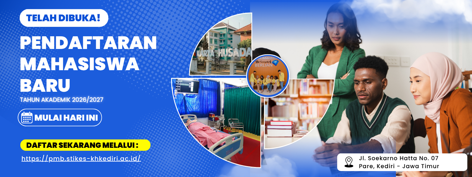 Telah dibuka Pendaftaran Mahasiswa Baru STIKES dan AKZI Karya Husada Kediri Tahun Akademik 2026/2027. Pendaftaran bisa secara Online atau datang langsung ke Kampus STIKES dan AKZI Karya Husada Kediri di Jl. Soekarno Hatta No. 7 Pare, Kediri, Jawa Timur.